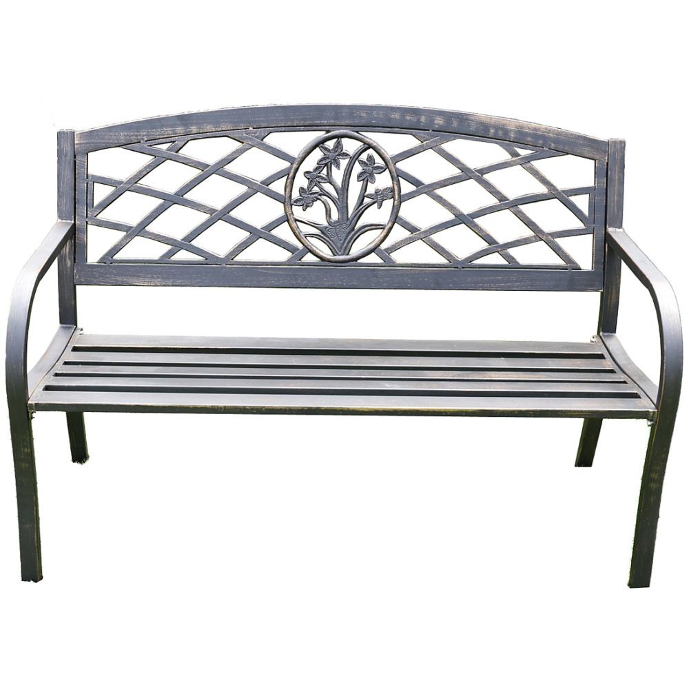 The Donard Daffodil Bench is an expertly hand-crafted steel garden bench in a rustic antique bronze/gold finish. The bench features a detailed Daffodil design combined with latticework to the back. This garden bench is the ideal place to relax during the warmer months of the year.