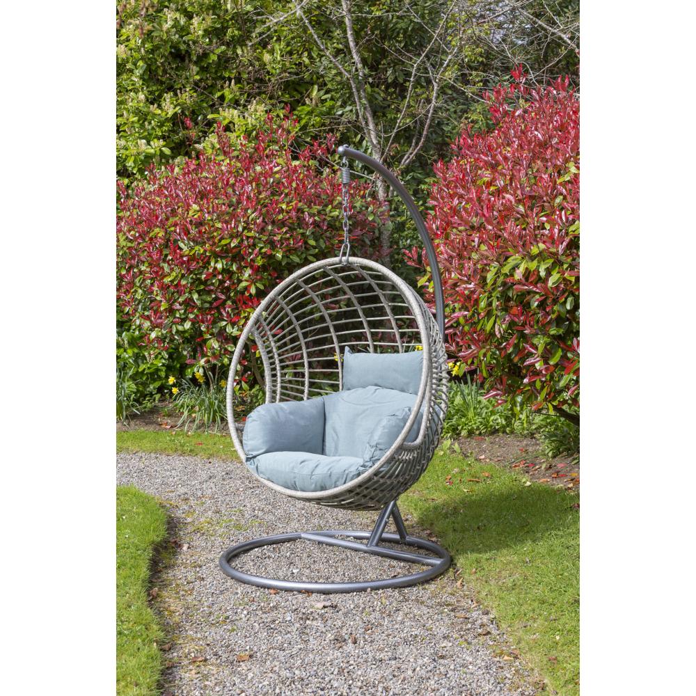 The Sorrento Hanging Egg Chair Will Make An Excellent Addition To Your Outdoor Space And Is A Perfect Way To Spend A Lazy Summer'S Day In Your Own Private Pod Of Comfort. Made From Durable Materials That Look Just Like Rattan, This Chair Has A Sturdy Powder-Coated Steel Base And Arm Which Allows It To Swing Freely In All Directions. The Chair Comes Complete With A Duck Egg Blue Washable Armchair Style Cushion And Adjustable Headrest For Ultimate Comfort. This Swinging Egg Chair Also Comes With A Separate Base To Allow You To Use It As A Stand Alone Chair And Can Be Used Either Indoors Or Outdoors Making It Ideal For Your Home.